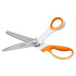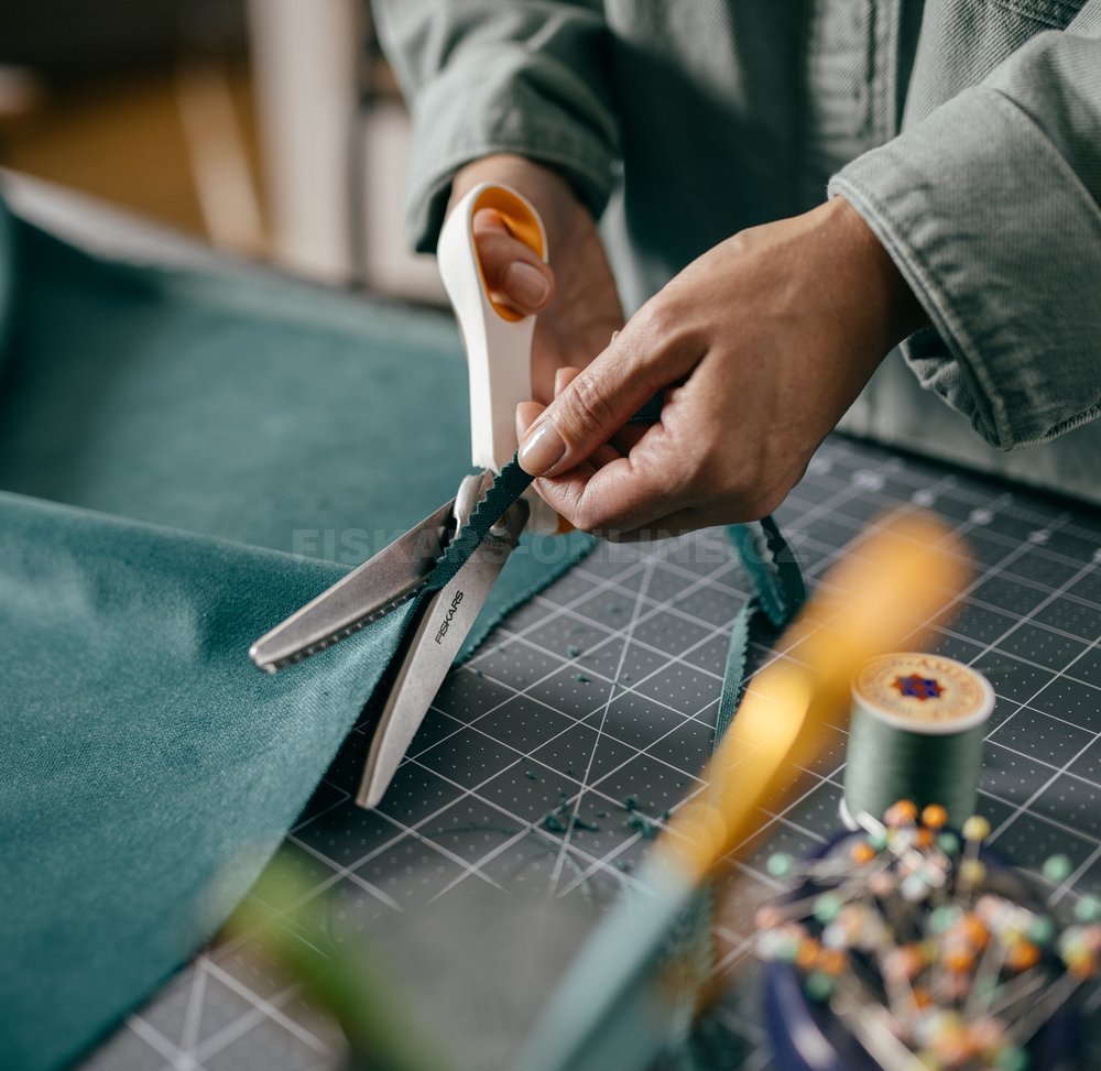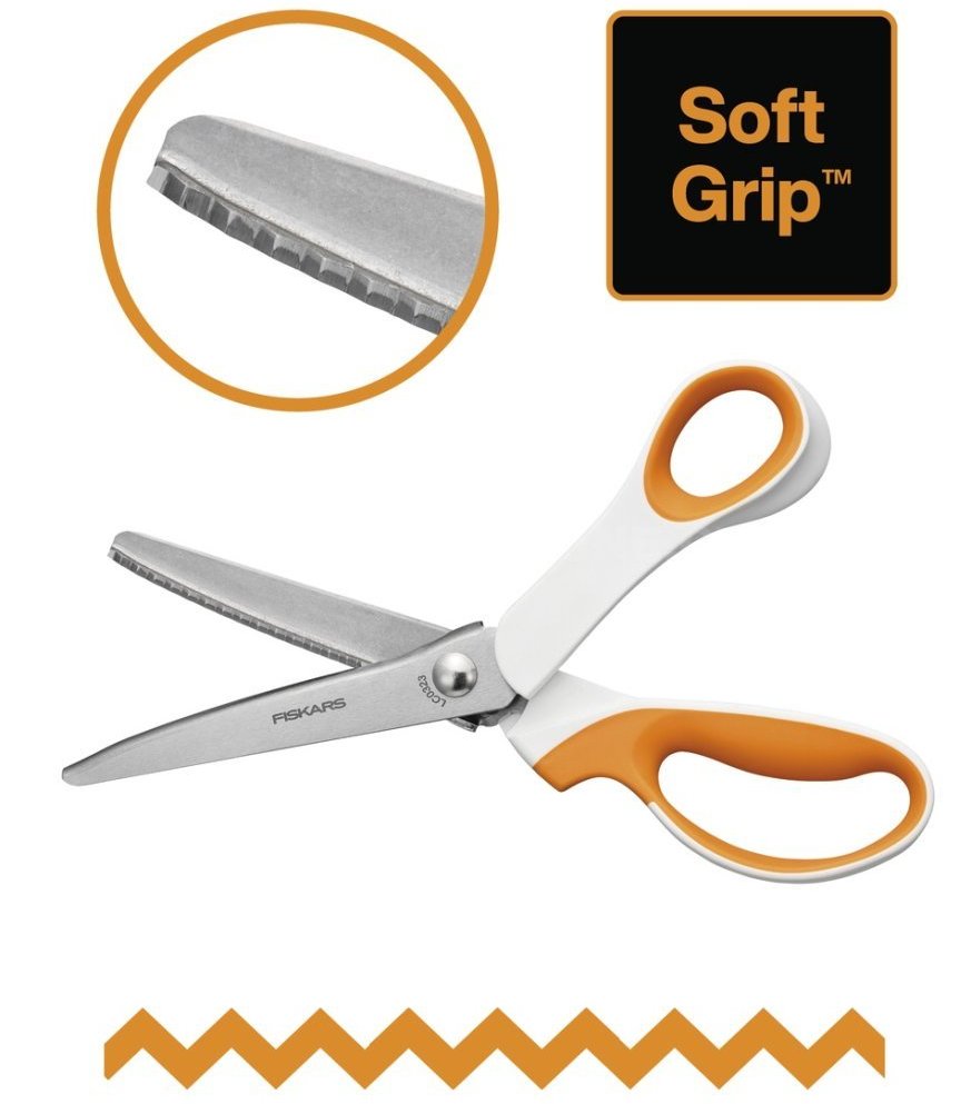 Vysoce kvalitní čepele z nerezové oceli jsou přesně broušeny tak, aby vytvářely čistý pilovitý profil po celé délce střihu. Prodloužená spodní čepel usnadňuje plynulé stříhání delších kusů látky bez nadzvedávání.