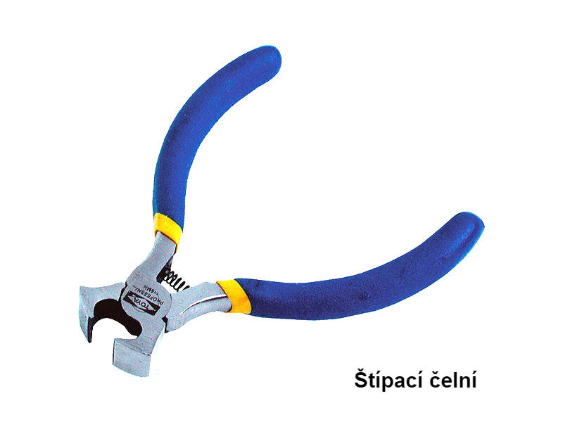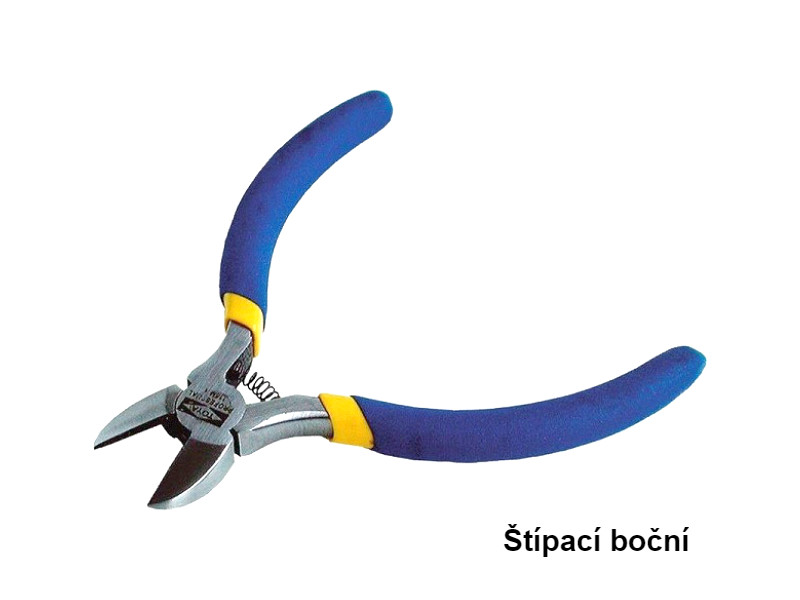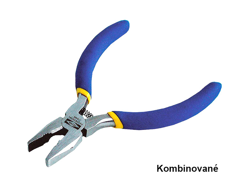 • kleště: kombinované, štípací boční, půlkulaté přímé, štípací