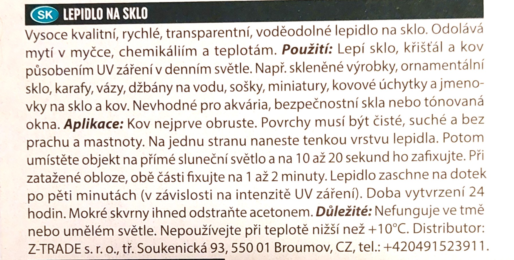 vysoce kvalitní, rychlé, transparentní, voděodolné lepidlo na sklo