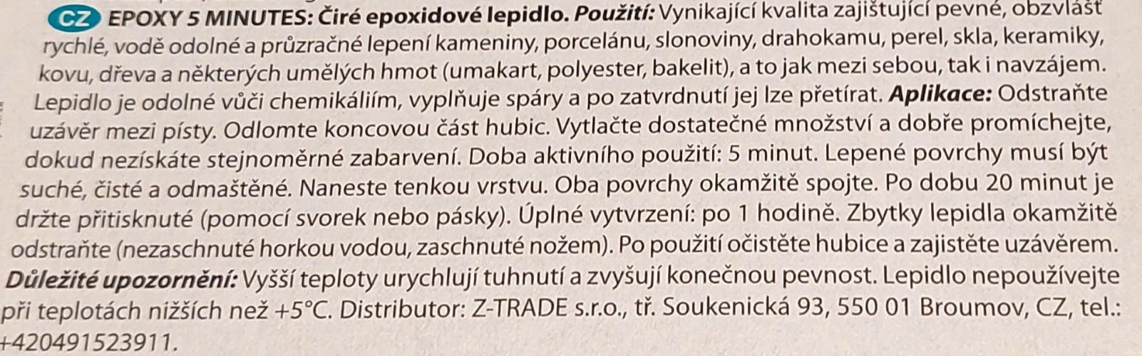není vhodné pro lepení PP, PE, teflonu a silikonu