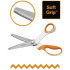 Vysoce kvalitní čepele z nerezové oceli jsou přesně broušeny tak, aby vytvářely čistý pilovitý profil po celé délce střihu. Prodloužená spodní čepel usnadňuje plynulé stříhání delších kusů látky bez nadzvedávání.