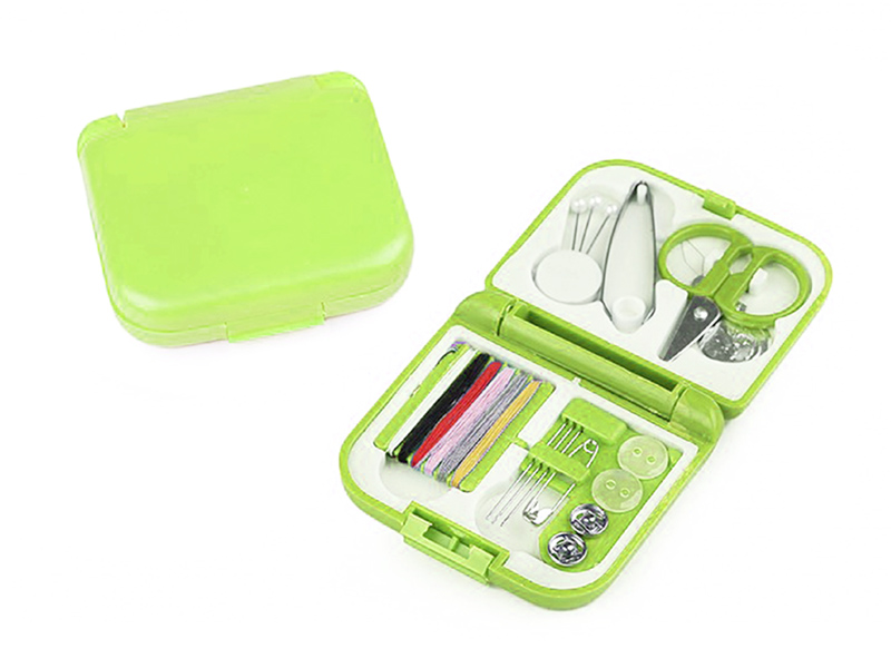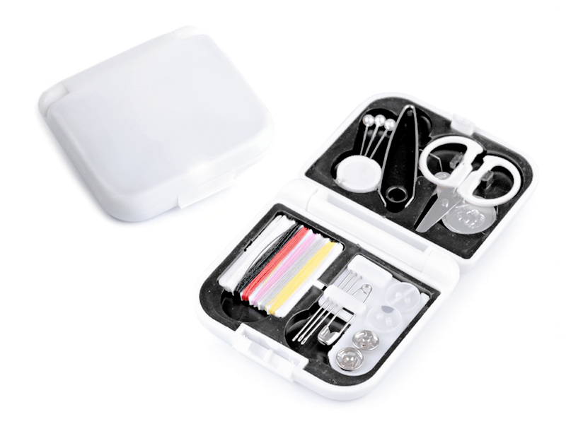 - 6 ks barevných nití - 3 ks jehly - 3 ks špendlíky (délka 28 mm) - 2 ks knoflíky, velikost 18" - 2 ks kovové patentky (Ø9 mm) - 1 ks spínací špendlík - 1 ks pinzeta - 1 ks nůžky - 1 ks navlékač nití